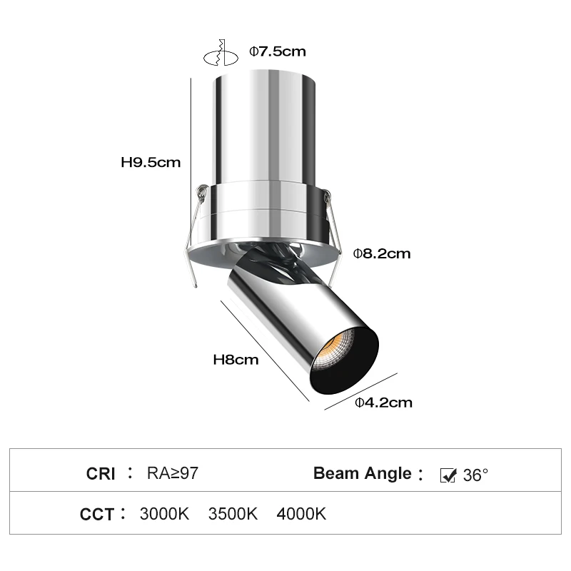 Modern 75mm Ceiling Spotlight Adjustable Indoor Led Recessed Base Round Pattern 12W IP44 for Home Downlight Led Light